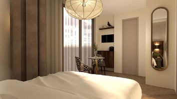 Inside, you will find two separate beds in a hotel configuration (200 x 160 cm), a television, a mini safe, and a stylish bathroom with a walk-in shower.